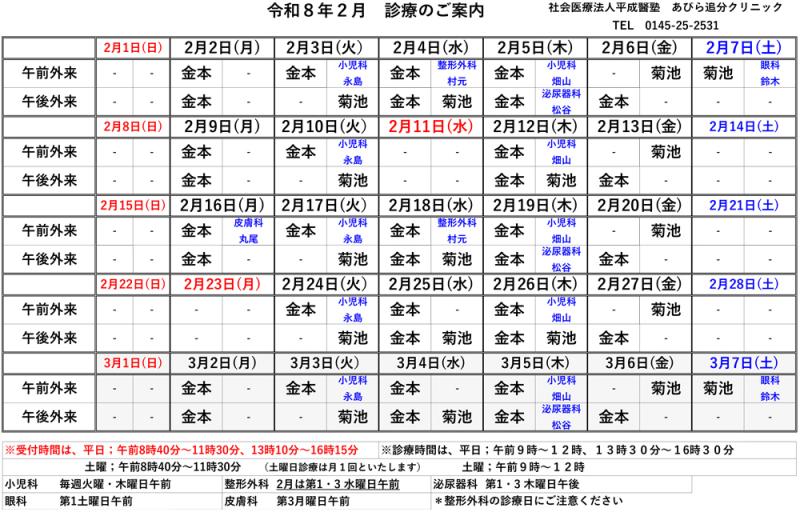 令和8年2月 診療のご案内